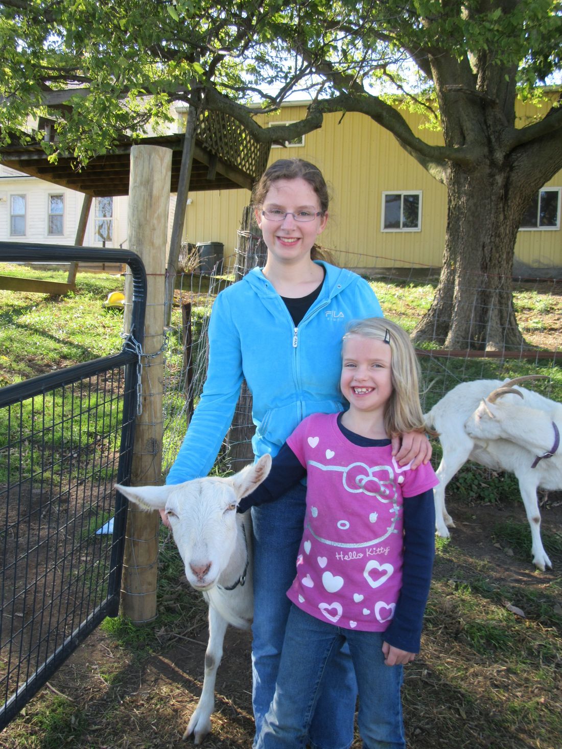 Meredith Culberson is pictured here with her sister Ruthanna and one of the goats in which she milks to make soaps and lotions made from the milk. Meredith will be selling her homemade soaps and lotion at the upcoming Pana Community Hospital Auxiliary Bazaar.