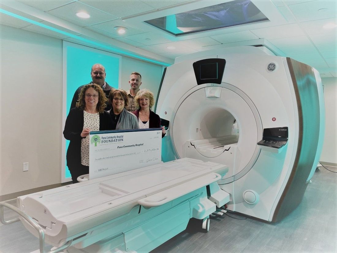 Pictured are Trina Casner, President and CEO of Pana Community Hospital; Cindy Miles, Diagnostic Imaging Manager; Vickie Coen, Chief Clinical Officer/Nurse Executive with Brian Sims, Pana Community Hospital Foundation Board Chairman, and Derek Ade Executive Director of the Foundation. The Foundation presented a check for $2,575,000 to PCH for the MRI Caring Suite.